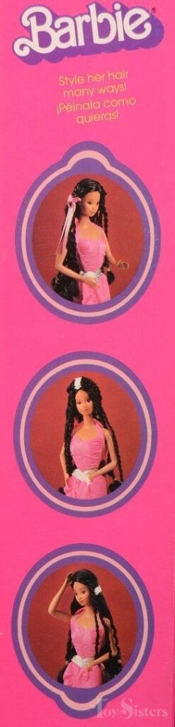 This doll was copyrighted / released in 1982 / 1983. To see other dolls from 1983, click here. She has the Spanish / Hispanic head mold. To see other dolls with this head mold, click here. To see other Twirly Curls dolls, click here. This doll was made in Taiwan.