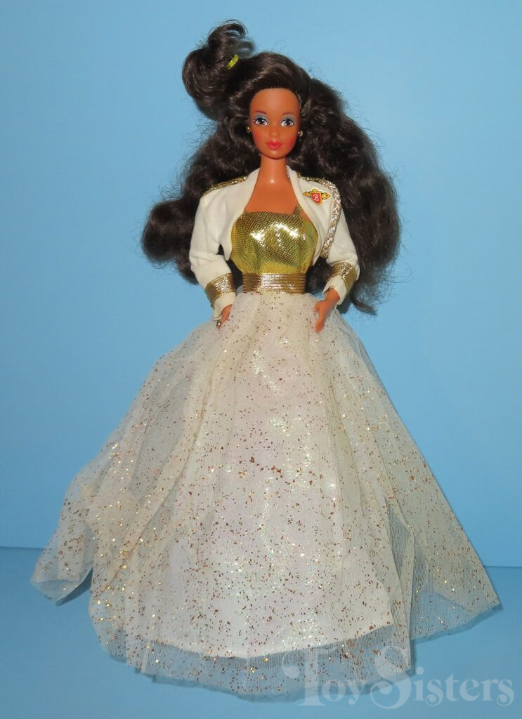 This doll was copyrighted and released in 1990. To see other dolls from 1990, click here. She has the Steffie head mold. To see other dolls with this head mold, click here. This doll was made in China. She also comes in African American, Asian, and Caucasian versions.
