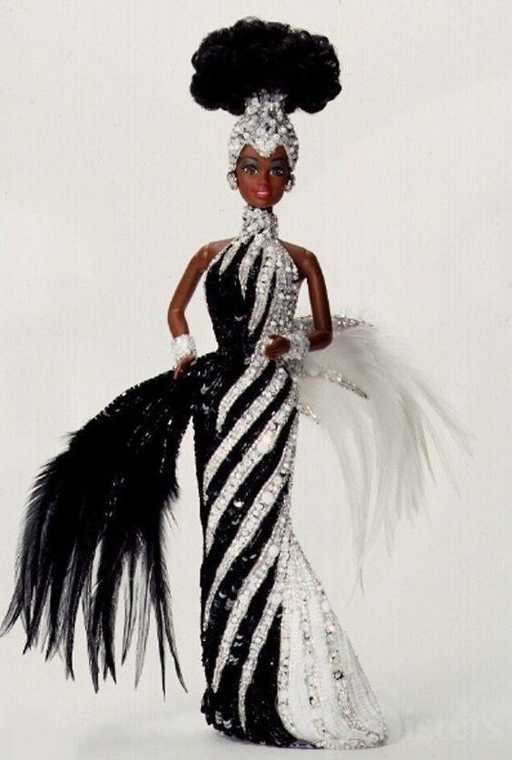 This doll was copyrighted and released in 1991. To see other dolls from 1991, click here. She has the Christie head mold. To see other dolls with this head mold, click here. This doll was made in China. She is part of a series of dolls designed by Bob Mackie. To see other Bob Mackie dolls, click here.
