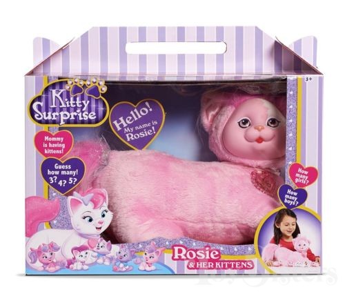 Rosie is a Kitty Surprise mommy plush released by the toy line Just Play. She could come with three, four, or five kittens tucked in her tummy pouch. To see other Just Play mommy cats, click here.