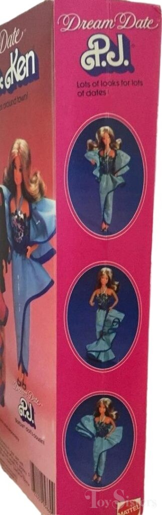 This doll was copyrighted / released in 1982 / 1983. To see other dolls from 1983, click here. She has the Steffie head mold. To see other dolls with this head mold, click here. To see the Dream Date series, click here. This doll was made in Taiwan and shares a face-up with the P.J. from the Barbie & Friends set.