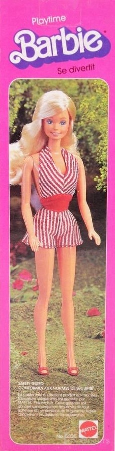 This doll was released in the European / Canadian market in 1983. To see other dolls from this year, click here. She has the Superstar head mold. To see other dolls with this head mold, click here. The number 5336 (and the box art) is shared among several Foreign Market dolls (Fantasia, Standard Swimsuit, 5336 Steffie, and City Barbie). Playtime shares the number but not the box / box art.