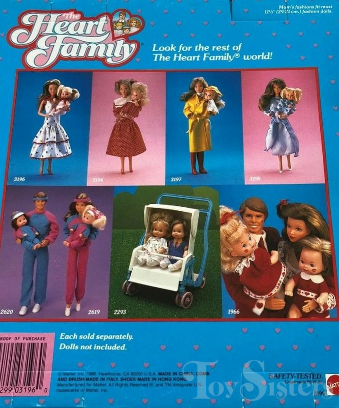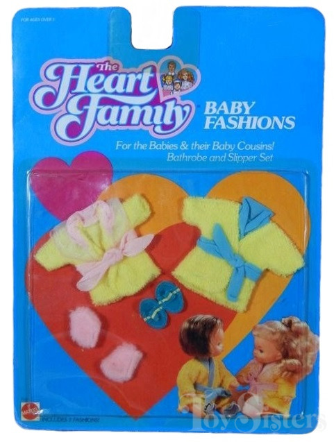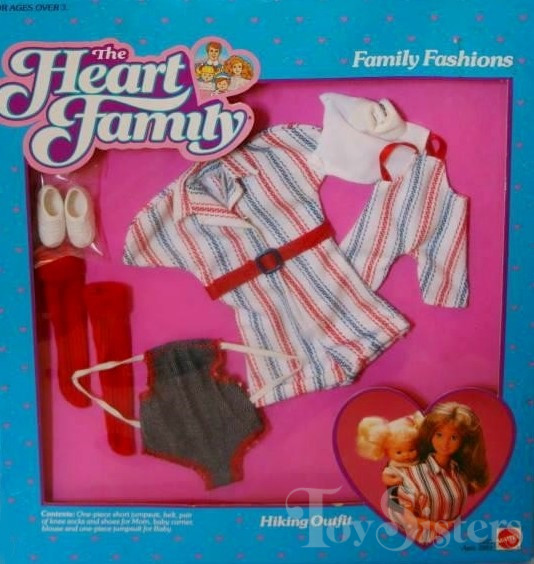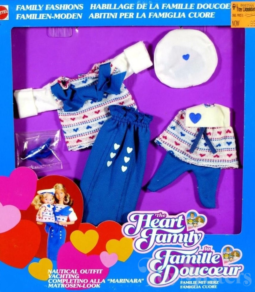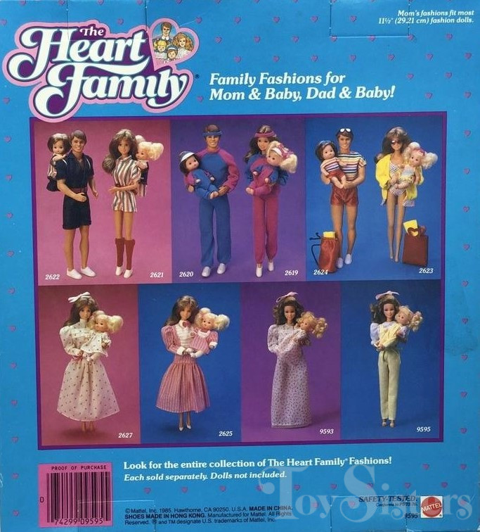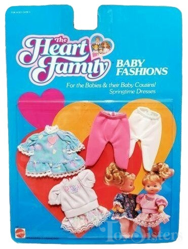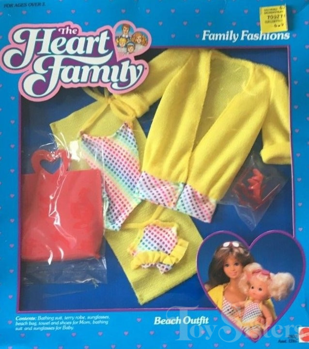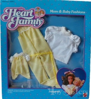 The Heart Family dolls were marketed as Barbie doll’s friends and were sold from 1984-1990. There were also many fashions released in conjunction with the Heart Family line. They are shown below on this page. To see Heart Family dolls, click here.