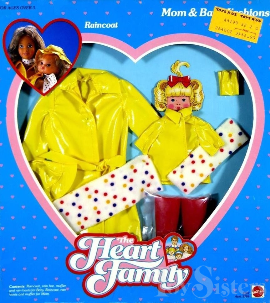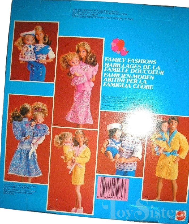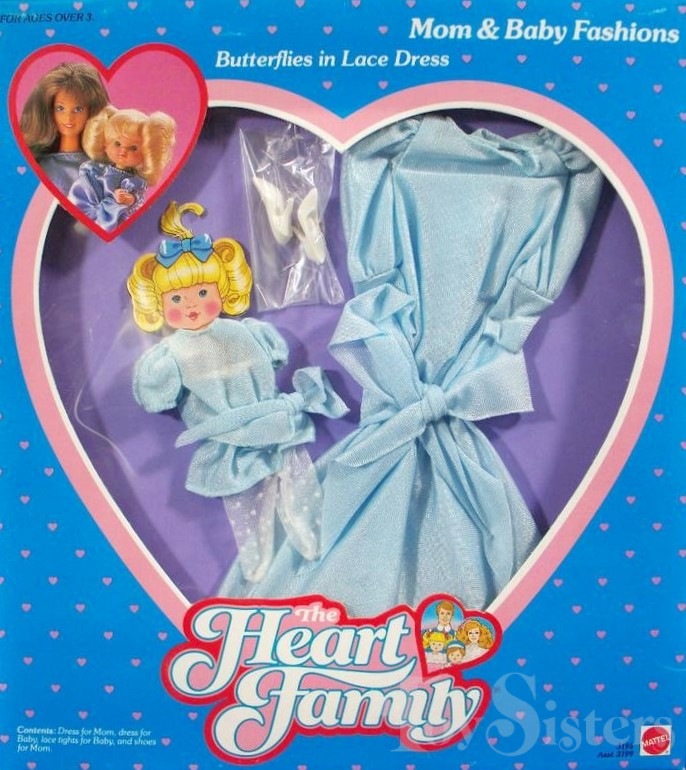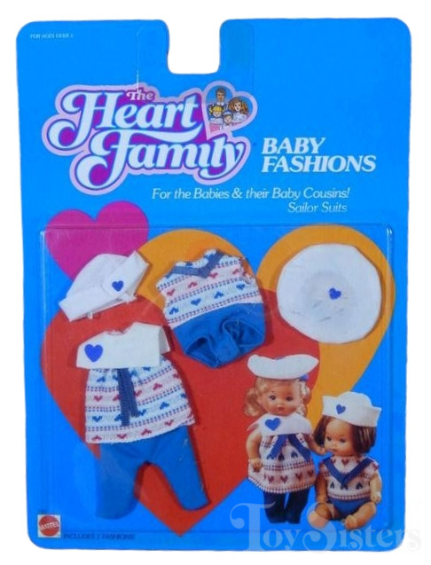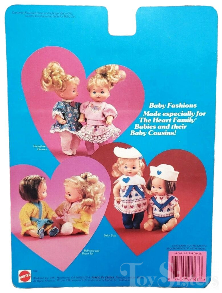 The Heart Family dolls were marketed as Barbie doll’s friends and were sold from 1984-1990. There were also many fashions released in conjunction with the Heart Family line. They are shown below on this page. To see Heart Family dolls, click here.
