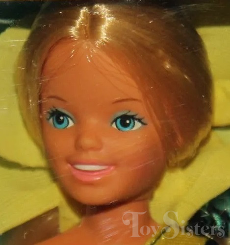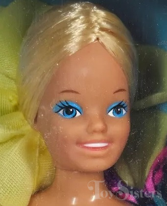 This doll was copyrighted / released in 1985.  To see other dolls from this year, click here.  She has the Hot Stuff Skipper head mold.  To see other dolls with this head mold, click here.  To see other Tropical dolls, click here.  To see other Barbie beach dolls, click here.  This doll was made in China and Hong Kong over several years, and there are notable variations.