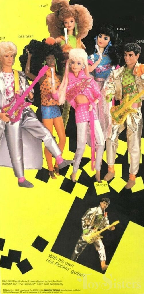 This doll was copyrighted / released in 1986 /1987 and is part of the second series of Barbie and the Rockers dolls. To see other dolls from 1987, click here. This doll was manufactured in Taiwan.