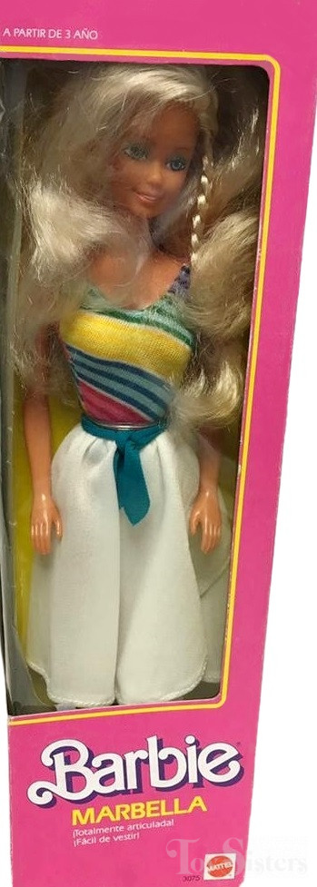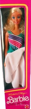 This doll was released to international markets in 1986. To see other dolls from this year, click here. She has the Superstar head mold. To see other dolls with this head mold, click here. To see other Fashion Play dolls from this series, click here. All the dolls in this series have the Sun Gold Malibu face. They were all manufactured in the Philippines.