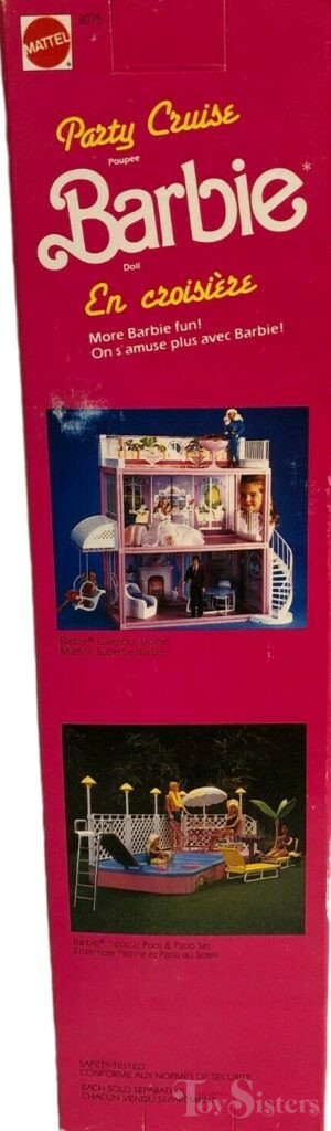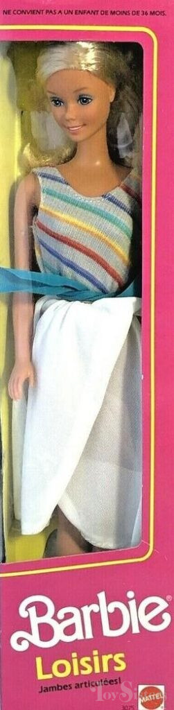 Also, all the dolls in this series come under the “Fashion Play” name as well as under a more descriptive name (Party Cruise, in the case of this doll). Additionally, this particular doll in the series was also released as Loisirs in France (with some variations to the outfit) and Marbella.