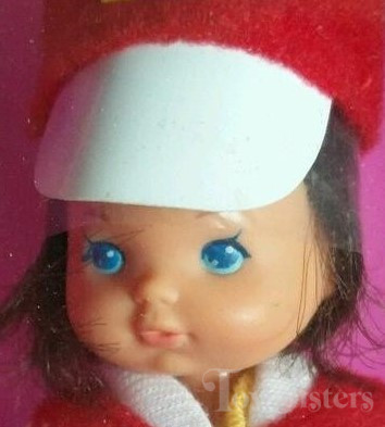 This doll was copyrighted in 1987. To see other dolls from 1987, click here. It is part of the Heart Family doll line, which is a companion line to Mattel’s Barbie. To see other Heart Family dolls, click here. This doll is in the Rosebud style of Mattel/Barbie baby. To see other Rosebud babies, click here.