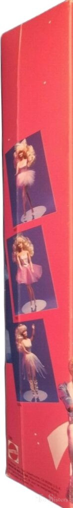 This doll was copyrighted / released in 1988. To see other dolls from 1988, click here. He has the Crystal Ken head mold. To see other dolls with this head mold, click here. He is a “My First Barbie” Ken, which means he has smooth, straight legs for easy dressing and “easy-on” fashions. To see other My First Barbie dolls, click here. To see other ballerina Barbie dolls, click here. This doll was made in Malaysia.