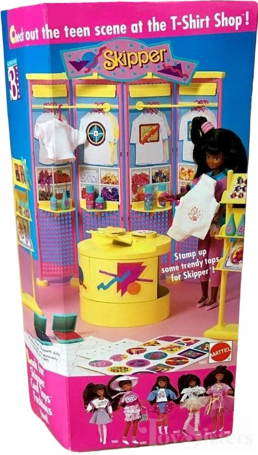 This doll was copyrighted / released in 1989 / 1990. To see other dolls from 1990, click here. She has the Teen Fun Skipper head mold. To see other dolls with this head mold, click here. To see other Cool Tops dolls, click here. This doll was made in China.