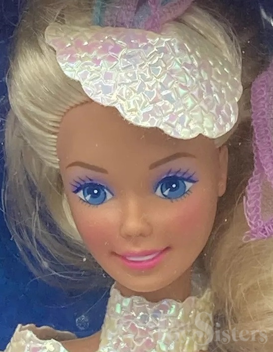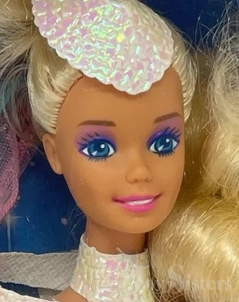 This doll was copyrighted in 1989 and released in 1990. To see other dolls from 1990, click here. She has the Superstar head mold. To see other dolls with this head mold, click here. This doll was made in China and Malaysia and there are differences between the two variations. To see other Ice Capades dolls, click here.