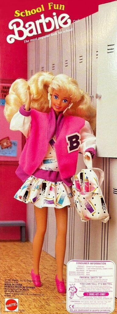 This doll was copyrighted / released in 1991. To see other dolls from 1991, click here. She has the Superstar head mold. To see other dolls with this head mold, click here. This doll was made in China and also comes in an African American version.