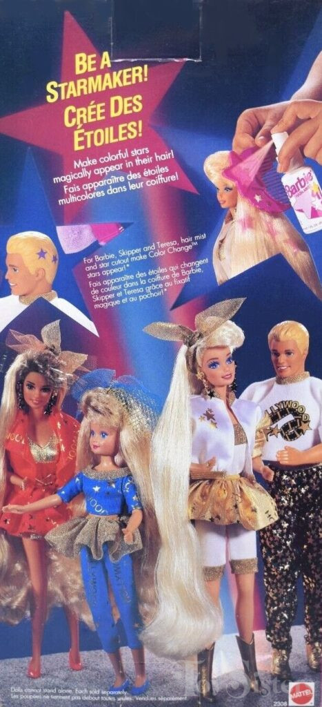 This doll was copyrighted in 1992 and released in 1993. To see other dolls from 1993, click here. She has the Superstar head mold. To see other dolls with this head mold, click here. To see other Hollywood Hair dolls, click here.