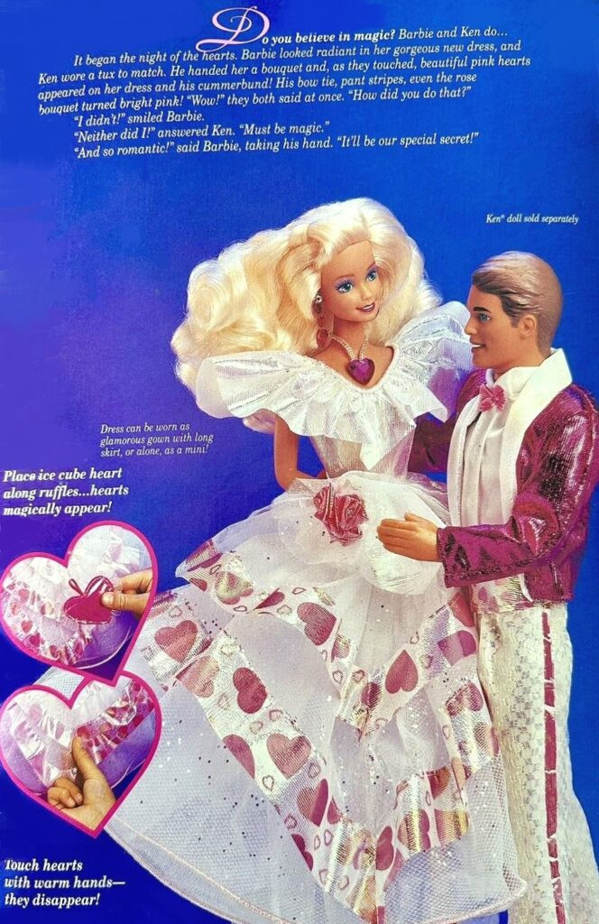 This doll was copyrighted / released in 1992 / 1993. To see other dolls from 1993, click here. She has the Superstar head mold. To see other dolls with this head mold, click here. To see other Secret Hearts dolls, click here. This doll also comes packaged in a Deluxe Giftset with a special Ken.