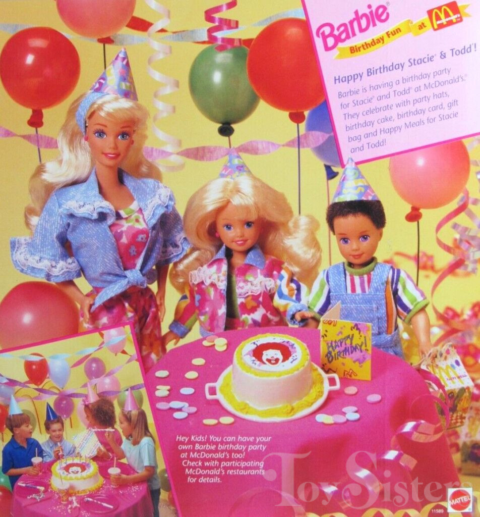 This doll set was copyrighted / released in 1993 / 1994. To see other dolls from 1994, click here. Barbie has the Superstar head mold. To see other dolls with this head mold, click here. Stacie has the Stacie #1 head mold. To see other dolls with this head mold, click here. Todd as the Todd head mold. To see other dolls with this head mold, click here. This pack was manufactured in Malaysia. To see other McDonalds dolls, click here.