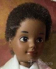 This doll set was copyrighted and released in 1994. To see other dolls from 1994, click here. Barbie has the Christie head mold. To see other dolls with the Christie head mold, click here. Stacie has the Stacie #1 head mold. Todd has the Todd head mold. This doll set was manufactured in Malaysia. To see other bride dolls, click here. This doll set was also available in an Caucasian version.