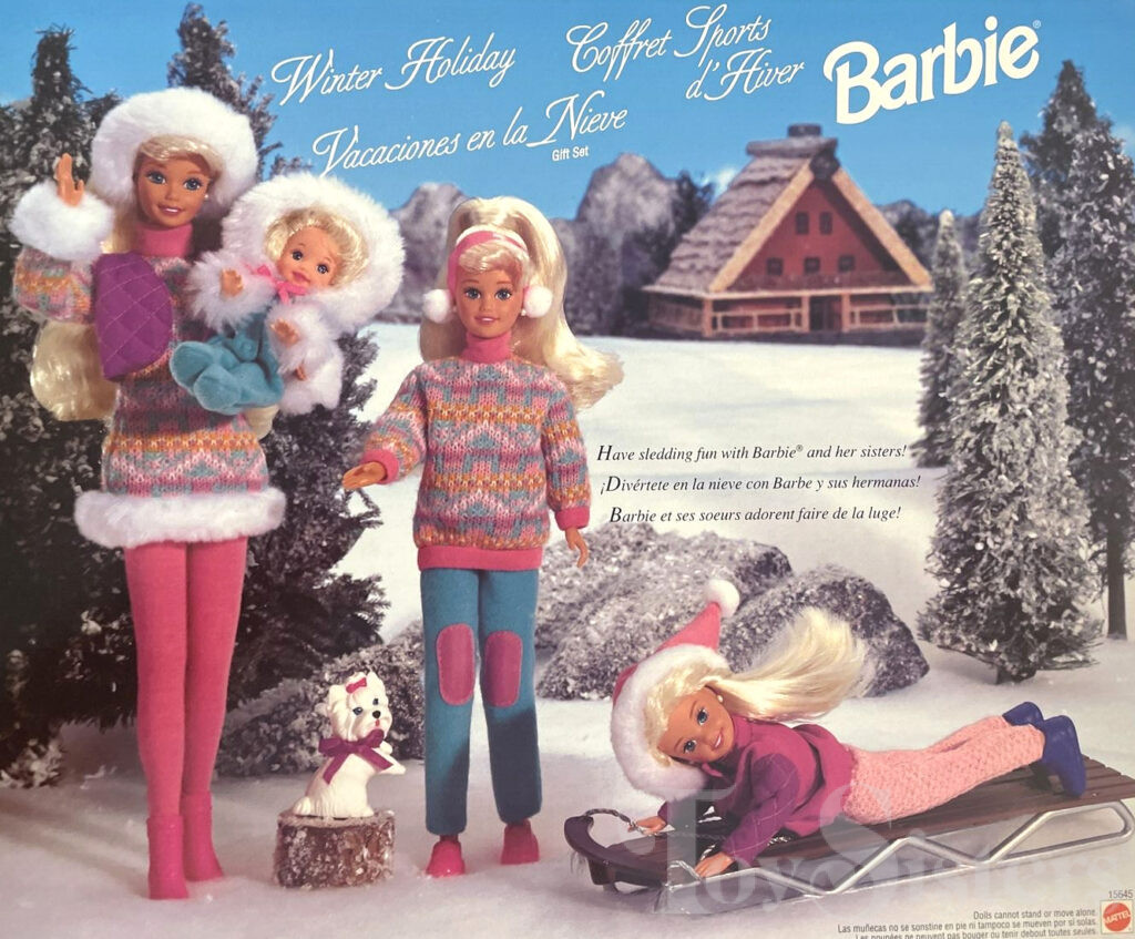 This doll set was copyrighted / released in 1995 / 1996. To see other dolls from 1996, click here. Barbie has the Superstar head mold. To see other dolls with this head mold, click here. Stacie has the Stacie #1 head mold. To see other Stacie dolls with this head mold, click here. Skipper has the Phone Fun Skipper Head Mold. To see other Kelly dolls from 1996, click here. To see all other Kelly dolls, click here. This doll set was manufactured in Malaysia.