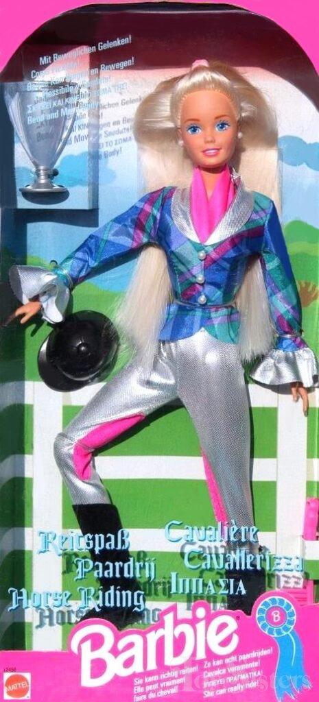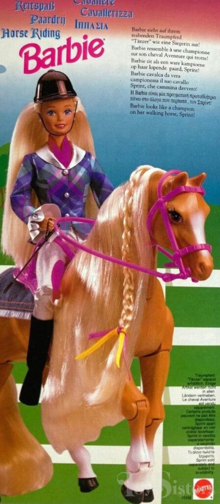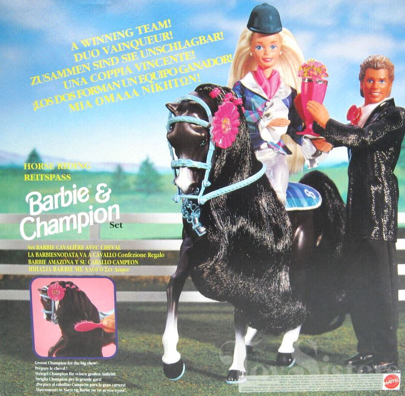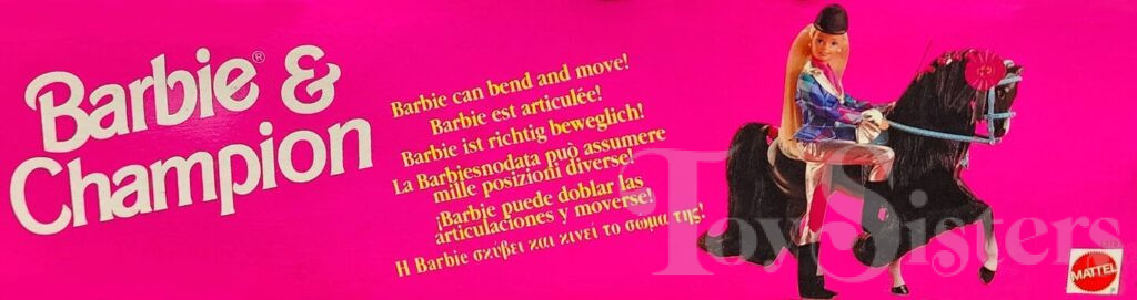 This doll set (#13181) was copyrighted / released in 1994 / 1995. To see other dolls from 1995, click here. She has the Superstar head mold. To see other dolls with this head mold, click here. This doll was manufactured in Malaysia. To see other Barbie horses, click here.