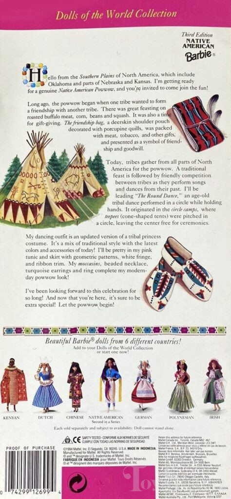 Native American Barbie is part of the Dolls of the World series (DOTW). To see the other Dolls of the World from 1995, click here. To see all the other Dolls of the World, click here.