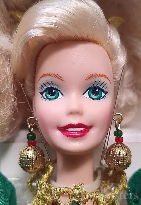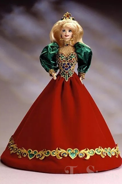 This doll was copyrighted / released in 1995. To see other dolls from 1995, click here. She is made of Porcelain and is part of the Holiday Porcelain Barbie Collection. She was made in Malaysia. To see other Porcelain Barbie dolls, click here. To see other Christmas / Holiday dolls, click here.