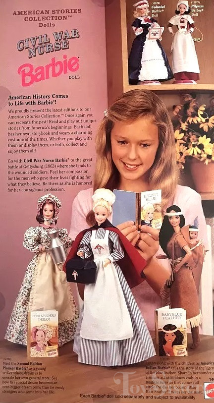This doll was copyrighted / released in 1995 / 1996. To see other dolls from 1996, click here. She has the Superstar head mold. To see other dolls with this head mold, click here. This doll was manufactured in Malaysia. To see other American Stories dolls from 1995 / 1996, click here. To see all dolls from the American Stories Collection, click here.