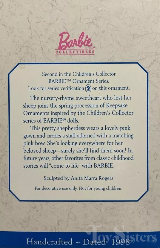 This doll was copyrighted / released in 1995 / 1996. To see other dolls from 1996, click here. She has the Superstar head mold. To see other dolls with this head mold, click here. This doll was manufactured in Indonesia. She is part of the Children’s Collector Series.