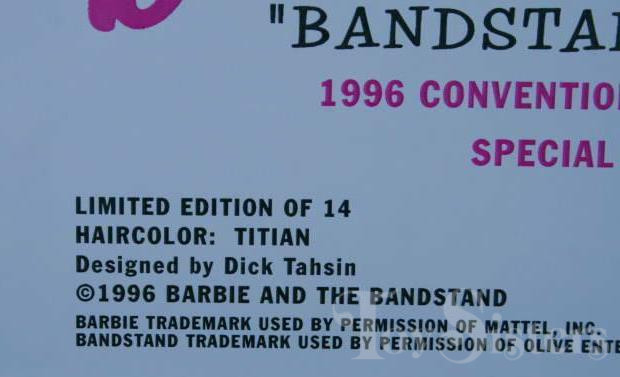 This doll was released in 1996 exclusively at the U.S. National Barbie Convention in Philadelphia, Pennsylvania. To see other dolls from 1996, click here. She has the Mackie head mold. To see other dolls with this head mold, click here. She was limited to 800 pieces. There was also a Titian-hair version (limited to 14 pieces as a gift to the hosting club members). To see other Barbie convention dolls from 1996, click here. To see all other Barbie convention dolls, click here.