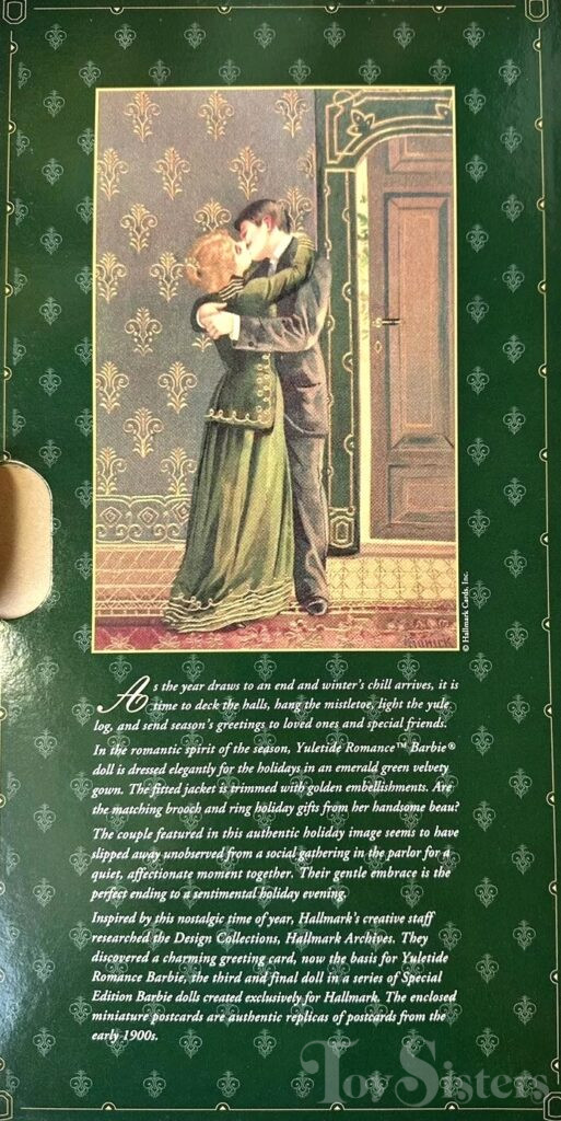 This doll was copyrighted / released in 1996. To see other dolls from 1996, click here. She has the Superstar head mold. To see other dolls with this head mold, click here. This doll was manufactured in China. She was a Hallmark exclusive. To see other Hallmark dolls, click here. To see other Christmas / Holiday dolls, click here.
