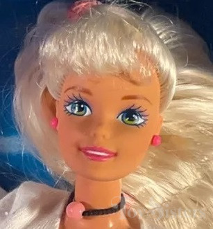 This doll was copyrighted / released to foreign (non-US) markets in 1995 / 1996. To see other dolls from 1996, click here. She has the Superstar head mold. To see other dolls with this head mold, click here. This doll was manufactured in Malaysia. To see other In-Line Skating dolls, click here.