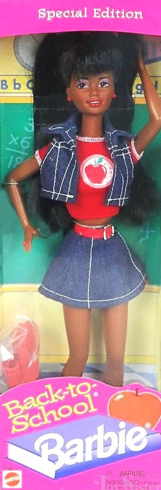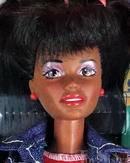 This doll was copyrighted / released in 1996 / 1997. To see other dolls from 1997, click here. She has the Christie head mold. To see other dolls with this head mold, click here. This doll was manufactured in Malaysia. She also comes in an AA version.