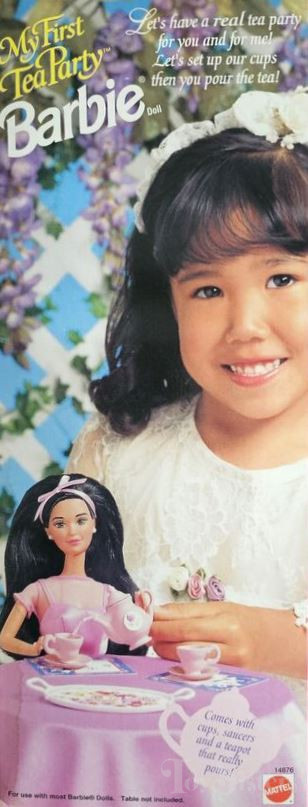 This doll was manufactured in Indonesia. My First Tea Party Barbie was also released in Caucasian, African American, and Hispanic versions.