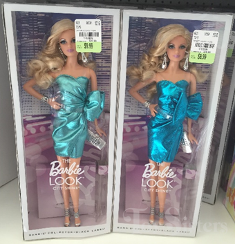 I saw this doll come in two different dress color variants.