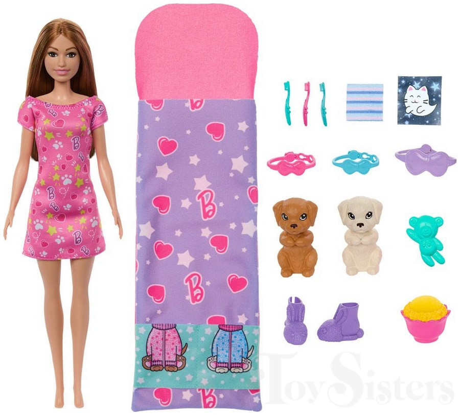 2024 Barbie Puppy Slumber Party Playset, Puppies, & Doll (HXN01)