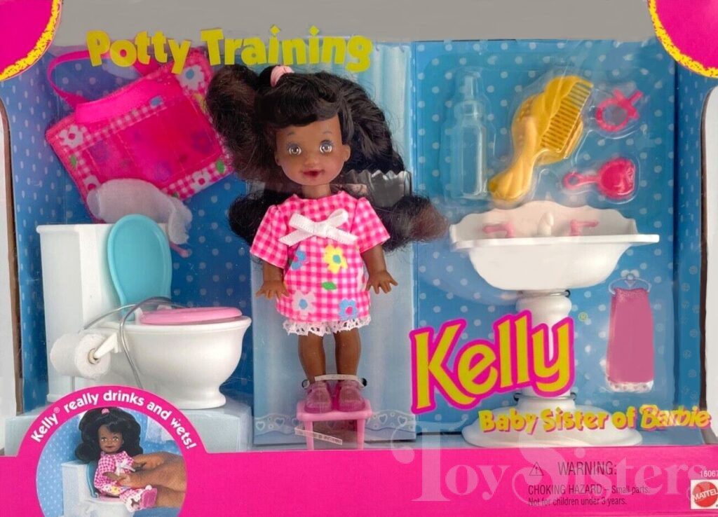 These Kelly dolls were copyrighted / released in 1995 / 1996. Kelly is the toddler sister of Barbie (until she gets disappeared in the 2000’s and replaced by Chelsea). To see other Kelly dolls by year, click here.