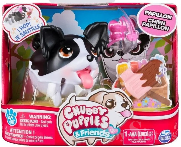 Papillon came in a single pack with a treat and bow. To see other Full Size Chubby Puppies, click here. To see other types of Chubby Puppies and Friends, click here.