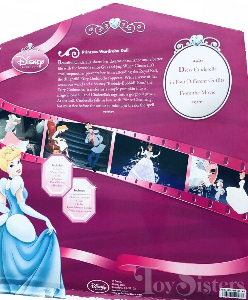 This doll came with three extra fashions. To return to Other Disney Store Cinderella dolls, click here. To return to Cinderella Disney Store 3, click here. To see other types of Cinderella dolls, click here. To return to the main Disney Doll menu, click here.