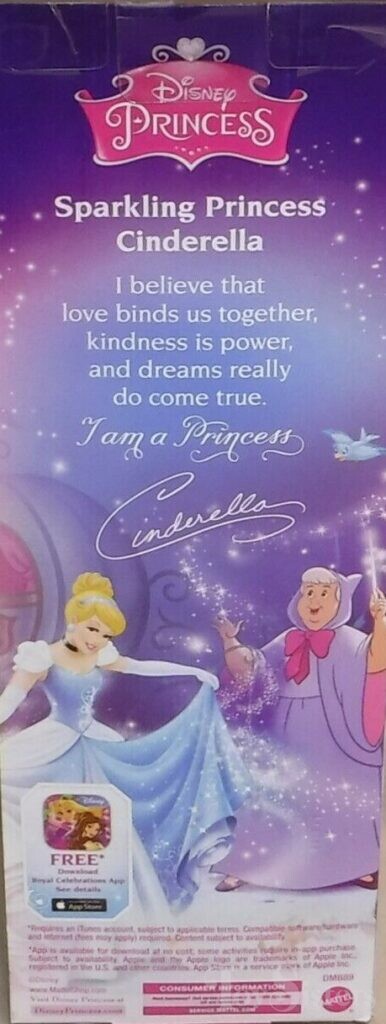 This Cinderella was released in 2014-2015. To return to Mattel 4 Cinderella dolls, click here. To see other types of Cinderella dolls, click here. To return to the main Disney Doll menu, click here.
