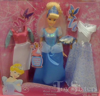 These fashions were also sold seperately and in other multi-packs. This set was released in the Mattel 2 & Mattel 3 styles. The Mattel 2 version of the set also had a Toysrus version that included mice. To return to Mattel 2 Other Release Cinderella dolls, click here. To return to Mattel 3 Cinderella, click here. To see other types of Cinderella dolls, click here. To return to the main Disney Doll menu, click here.
