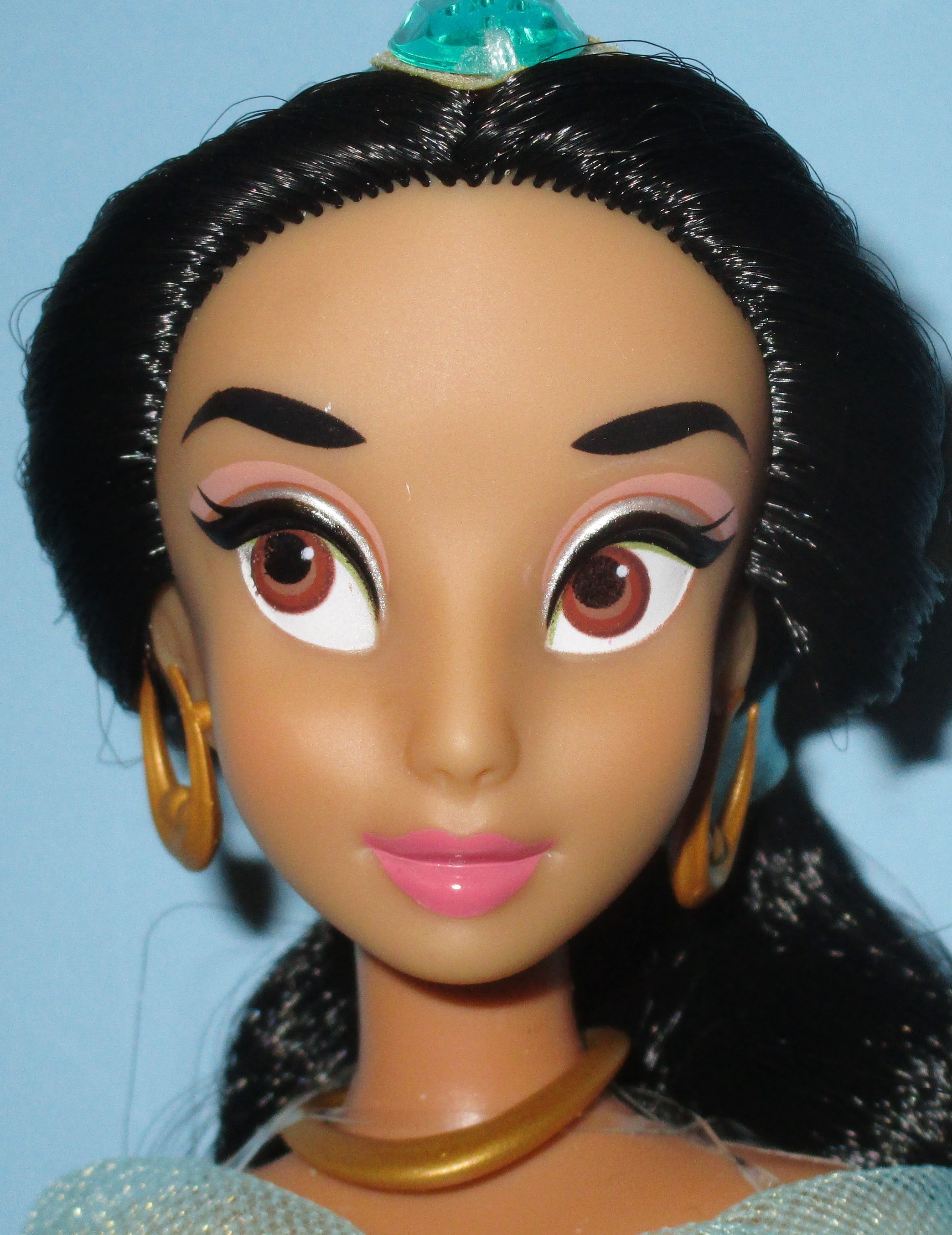 This doll was released at the Disney Parks.  She is the same as the 2018 Parks doll except that her arms are not articulated.  To return to Disney Store Style 3 Aladdin dolls, click here.  To see other types of Aladdin dolls, click here.  To return to the main Disney Doll menu, click here.