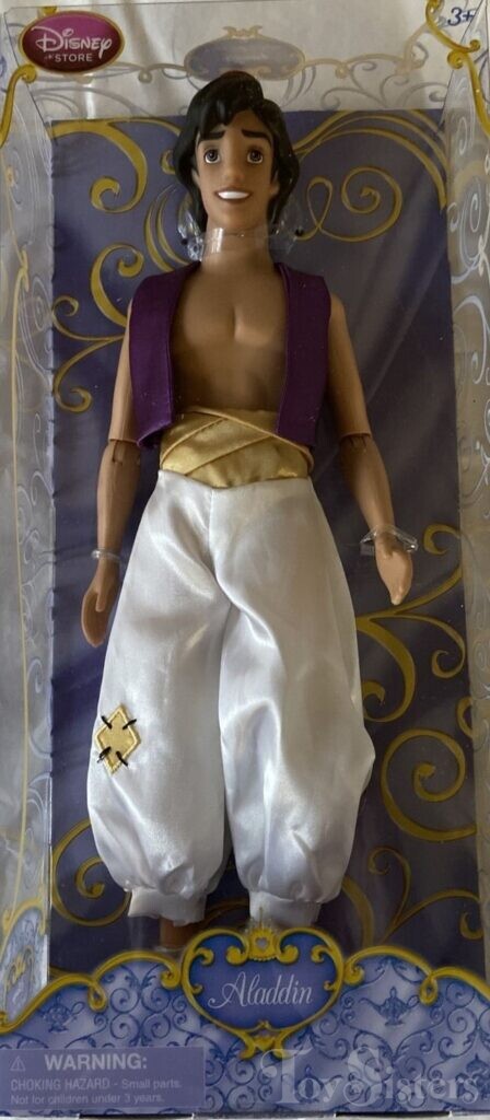 This Classic doll was released in 2013 at the Disney Store. He is the same (except for his box) as the 2011, 2012, and 2014 release. To return to Disney Store Style 3 Aladdin dolls, click here. To see other types of Aladdin dolls, click here. To return to the main Disney Doll menu, click here.