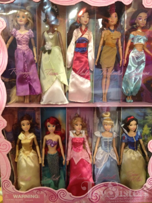 These dolls were released at the Disney Store in 2012. The dolls have the same dresses as the 2011 Multi-Pack (except Pocahontas, who has a new dress), but the dolls have updated faces (except for Mulan). This Mulan was released in the 2010, 2011 & 2012 Multi-Packs. To return to the Multi-Pack menu, click here. To return to the main Disney Doll menu, click here.