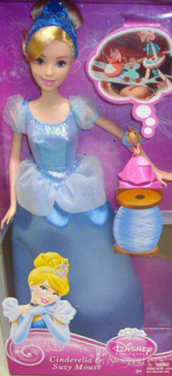 Cinderella came with Suzy Mouse. To return to Mattel 3 Cinderella dolls, click here. To see other types of Cinderella dolls, click here. To return to the main Disney Doll menu, click here.