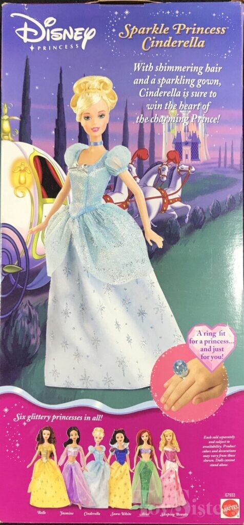 This Cinderella came with a ring for a child. To see other Classic Cinderella dolls, click here. To see other types of Cinderella dolls, click here. To return to the main Disney Doll menu, click here.