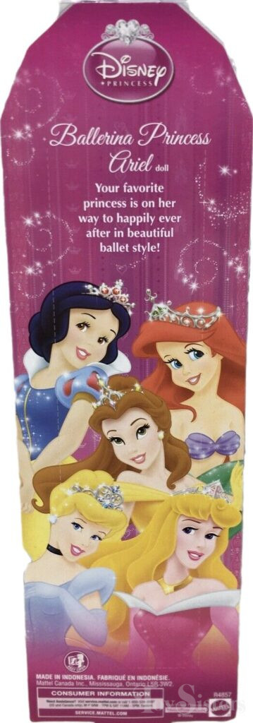 This doll was released in 2009. To see more Mattel #2 Little Mermaid Bath Dolls & Ballerinas, click here. To see other Mattel #2 Little Mermaid dolls, click here. To see other types of The Little Mermaid dolls, click here. To return to the main Disney Doll menu, click here.