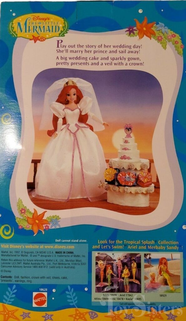 This doll was released in the late 1990s. She came with a cake. To see more Classic The Little Mermaid dolls, click here. To see other types of The Little Mermaid dolls, click here. To return to the main Disney Doll menu, click here.
