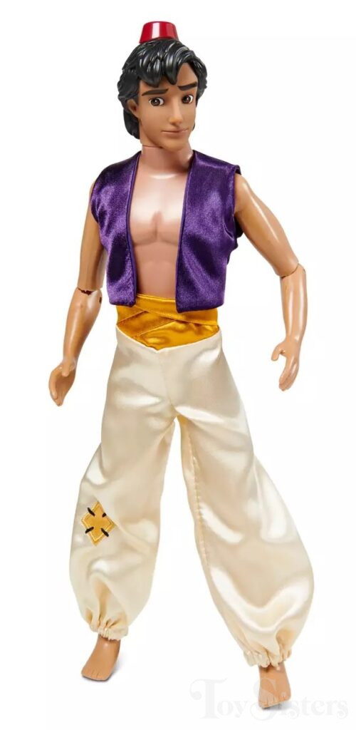 This Classic doll was released in 2024. He is the same (except for his box) as the 2015, 2016, 2017, and 2019 release. To return to Disney Store Style 3 Aladdin dolls, click here. To see other types of Aladdin dolls, click here. To return to the main Disney Doll menu, click here.