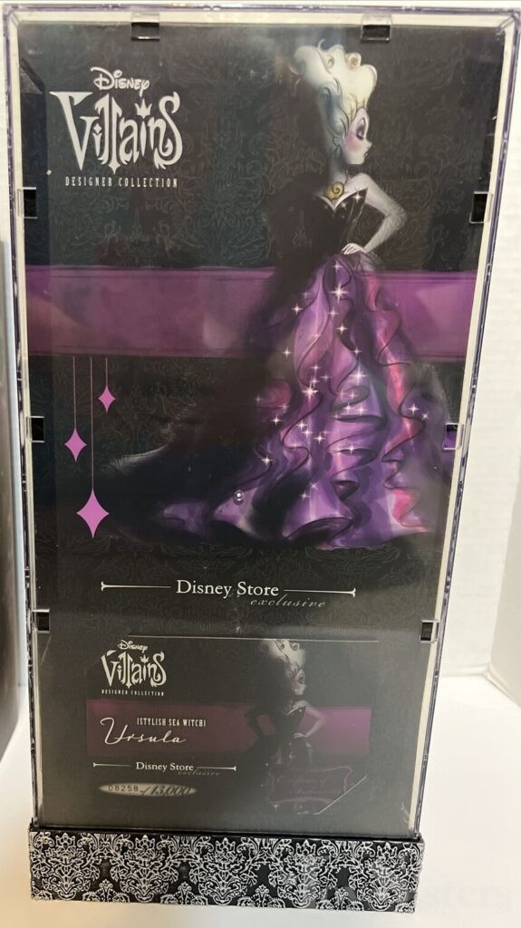 This doll was limited to 13000. To see more The Little Mermaid Designer dolls, click here. To see more Disney Store #3 Little Mermaid dolls, click here. To see other types of The Little Mermaid dolls, click here. To return to the main Disney Doll menu, click here.