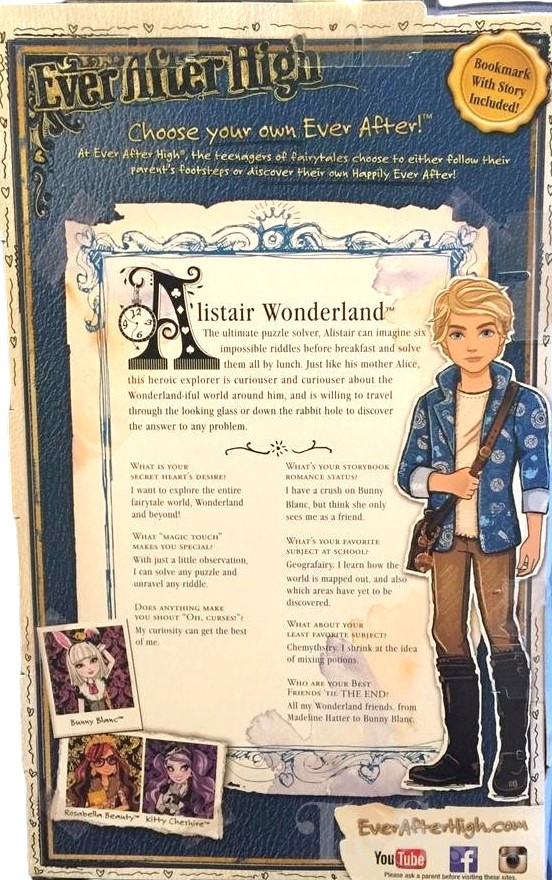 First Chapter Alistair Wonderland was released in 2015. To view other Alistair Wonderland dolls, click here. To view other Ever After High dolls By Year, click here.