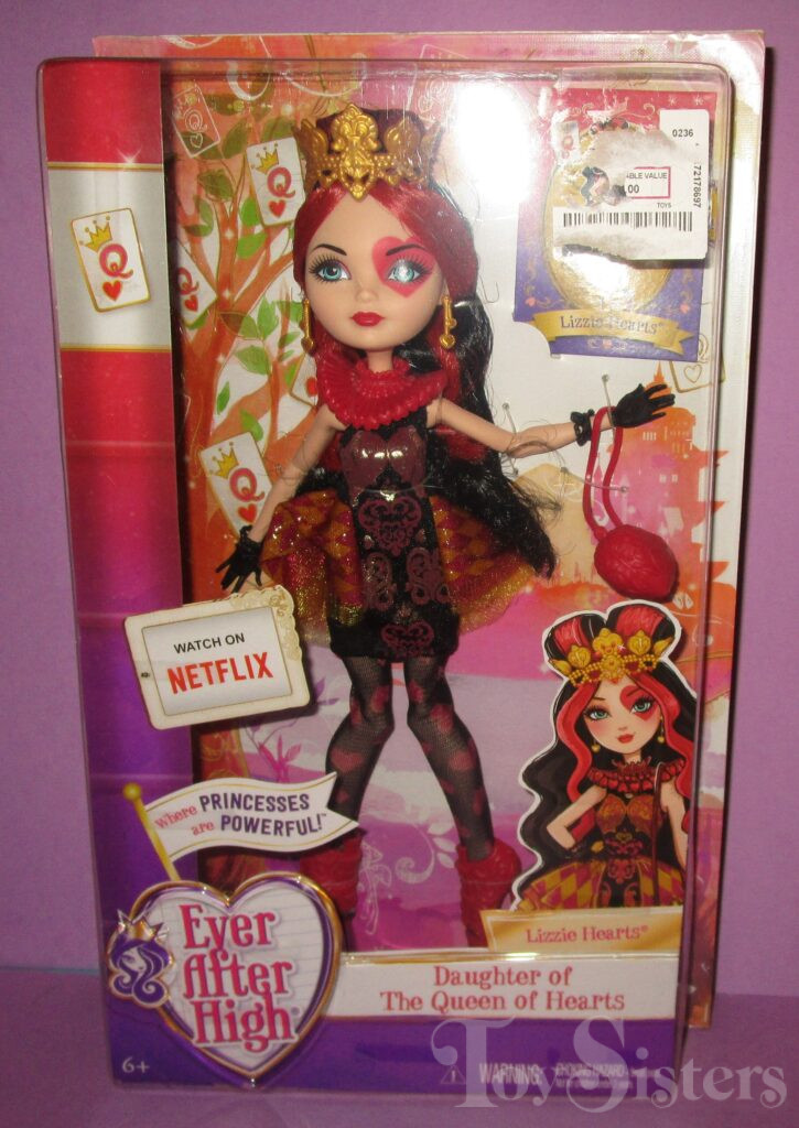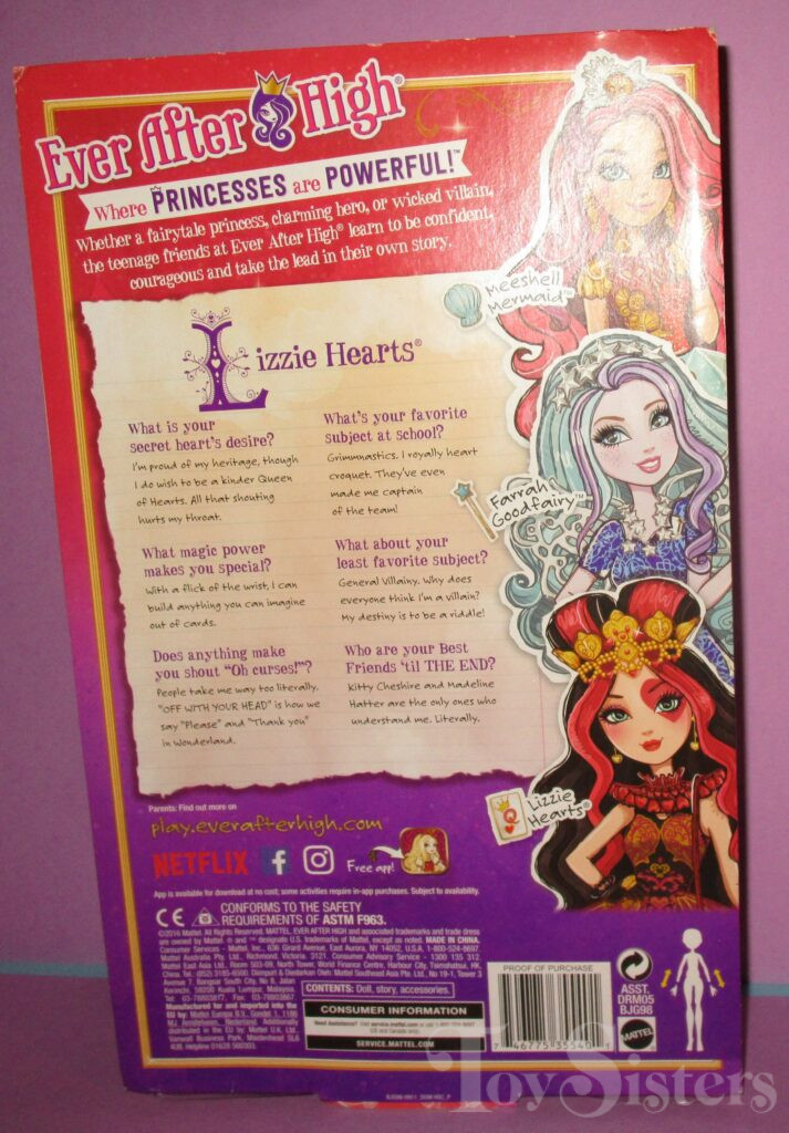 Original First Chapter Lizzie Hearts was first released in 2014. She was later released again. This version came with less accessories. To view other Lizzie Hearts dolls, click here. To view other Ever After High dolls By Year, click here.